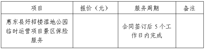 (一)項目名稱:惠東縣好招樓濕地公園臨時運營項目景區(qū)保險服務